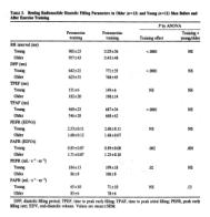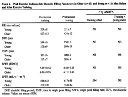 健常な若齢者と比較して高齢者は安静時および運動時の早期拡張時充満量は低下しているが,持久的なトレーニング行うことによって改善した。従って,左室拡張期の血液充満量は安静時あるいは運動時の一回拍出量,心拍出量,VO2maxを規定する重要なファクターであるかもしれない。